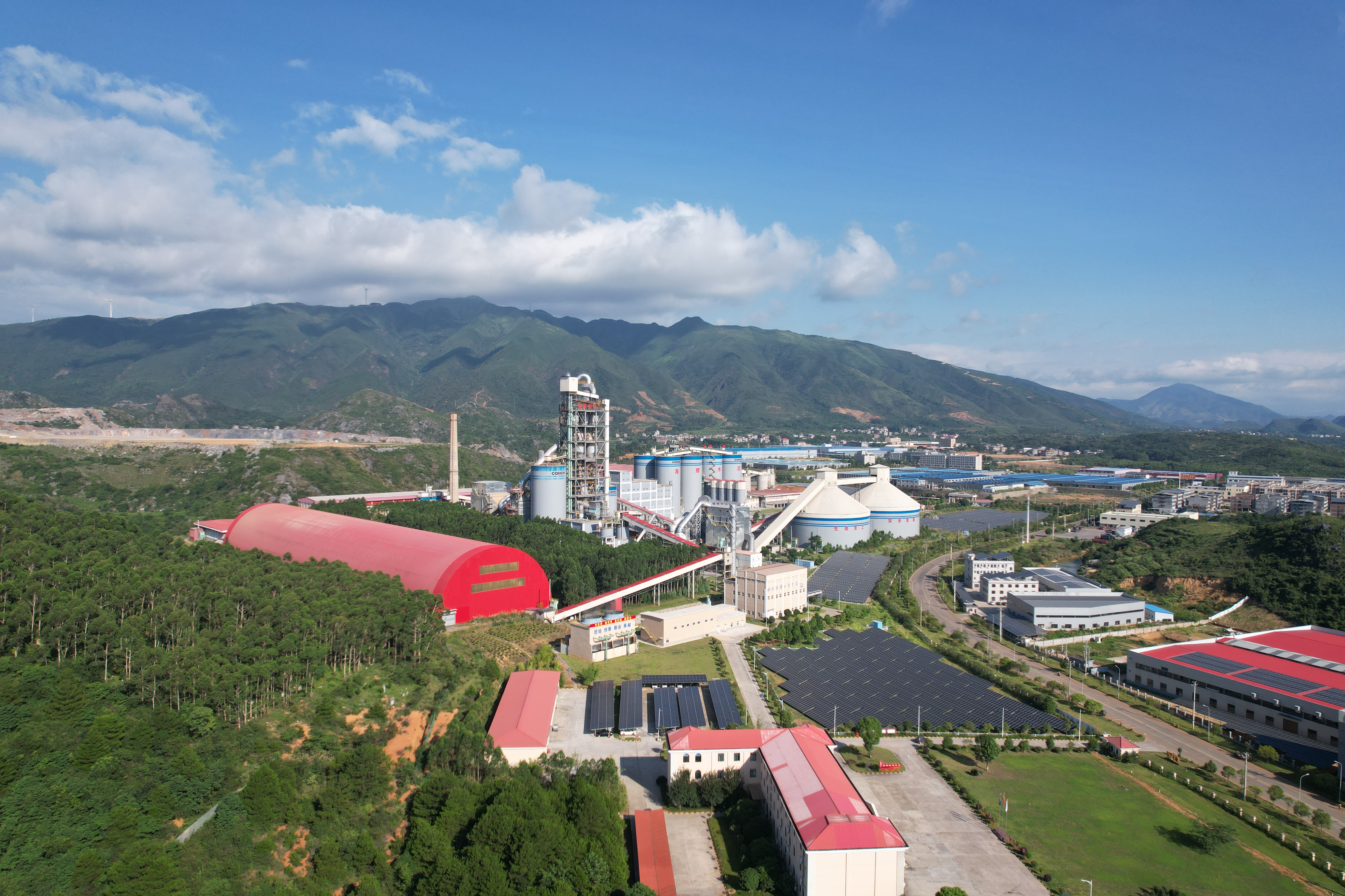 公司現(xiàn)有1條4500td新型干法水泥熟料生產(chǎn)線、220萬噸/年水泥粉磨和9MW余熱發(fā)電項目,總投資約9億元。公司新型干法水泥熟料生產(chǎn)線采用國內(nèi)最先進的新型干法窯外分解技術(shù),低N燃燒器,于2023年5月24日完成能效改造。原料粉磨采用具有世界一流技術(shù)的低噪音、低能耗立式銀磨機、皮帶斗式提升機。生產(chǎn)線環(huán)保裝備使用美國技術(shù)國內(nèi)制造的高效布袋收塵,全線使用先進可靠的DCS集散式計算機操作系統(tǒng),由中央控制室集中控制,數(shù)字化操作生產(chǎn)用水選用內(nèi)循環(huán)式水冷卻系統(tǒng),各污染物排放均優(yōu)于國家標(biāo)準(zhǔn)。積極推進節(jié)能環(huán)保體系建設(shè),利用光伏建設(shè)助力實現(xiàn)“雙碳”戰(zhàn)略,分兩期建成10.47MW光伏項目;同時建成中水處理系統(tǒng),對公司綠色發(fā)展、節(jié)能減排進行精細(xì)化管理,取得了明顯的社會效益和環(huán)境效益。