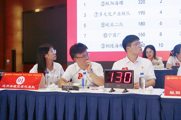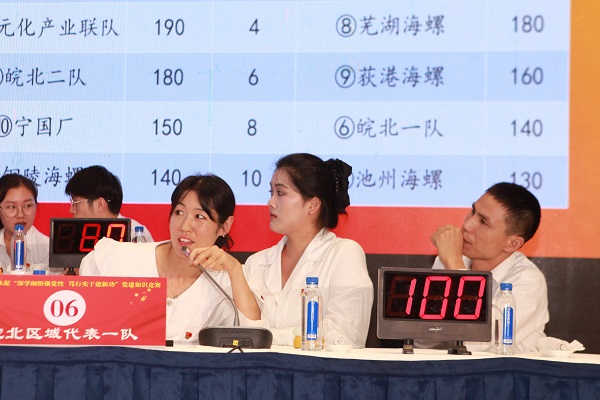 競賽來到第二階段同題共答環(huán)節(jié),6支晉級的代表隊全部清零,迎來了新一輪的“大考”。經(jīng)過13道題目的比拼,寧國廠代表隊率先取得晉級下一輪的“入場券”;樅陽海螺代表隊和省內(nèi)多元化產(chǎn)業(yè)聯(lián)隊因得分相同,在經(jīng)過一輪的加賽后,省內(nèi)多元化產(chǎn)業(yè)聯(lián)隊搶得先機,成功晉級。