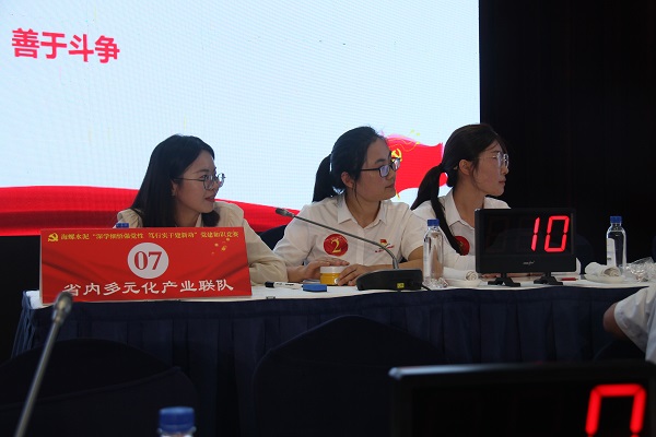 這次知識競賽以習近平新時代中國特色社會主義思想、黨的二十大報告等為主要內(nèi)容。試題將黨的歷史、時事政治、熱點新聞、企業(yè)經(jīng)營發(fā)展成果、形勢政策教育等嵌入其中,以視頻題、音頻題、識圖排序題、推理題等呈現(xiàn),特別是通過場上場下聯(lián)動,讓比賽既是參賽選手的同臺競技,又是給觀賽人員開展了一場沉浸式的黨課教育。