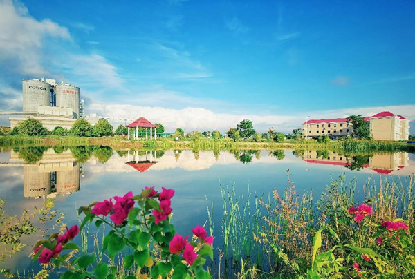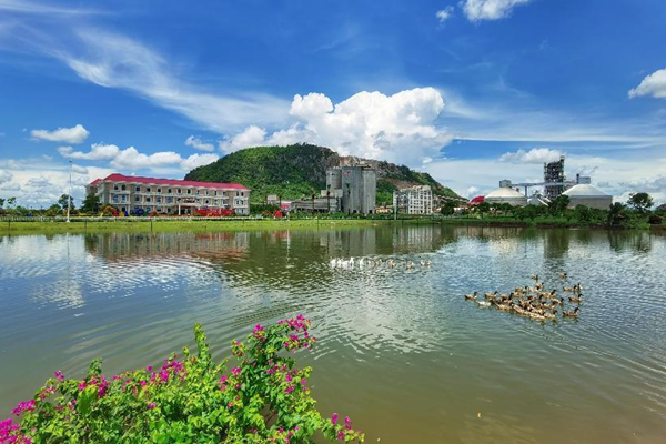 走進馬德望海螺廠區(qū),綠水環(huán)繞,青山相倚,花草掩映成趣,人工湖埂和綠植共同組成的“CONCH”標志在衛(wèi)星圖中也十分明顯,巧妙的設計使得自然和人文景觀相融極具特色,湖中成群的野鴨游過,一幅人與自然和諧共生的美麗畫卷徐徐展開。