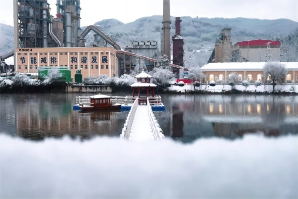 雪后初晴,陽光灑滿雪地,熠熠生輝,整個水泥廠仿佛被過濾了一般,空氣清新,視野開闊,一條條生產(chǎn)線正有條不紊地運(yùn)行,設(shè)備吞吐著熱氣,員工踏雪穿行,留下一串串腳印,展現(xiàn)出一幅繁忙且有序的生產(chǎn)畫卷。走過廠房,瓊枝玉樹,潔白的霜花掛滿枝頭,在陽光的照射下,銀光閃爍,美麗動人;行走在林間小道,看那尚未凋零的草木,遇雪成冰,白色與翠綠相間,紅黃點(diǎn)綴,嵌入一抹冬的生機(jī)。