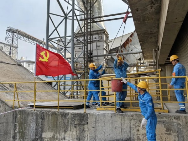 雙峰海螺黨員突擊隊(duì)清理篦冷機(jī)斜拉鏈地坑積料。他們說:保持決戰(zhàn)狀態(tài),沖刺目標(biāo)任務(wù),讓鮮紅的黨旗在一線高高飄揚(yáng)。