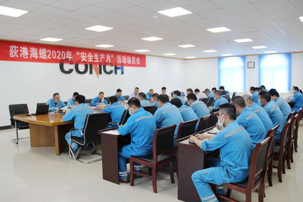 5月28日,荻港海螺在二樓早會會議室組織召開了“安全生產(chǎn)月”動員會。公司正按照“安全生產(chǎn)月”活動計劃安排,將廣泛開展“安全宣傳咨詢?nèi)铡?、“安全生產(chǎn)家屬開放日”等活動。