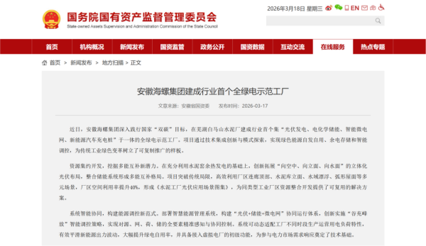 近日,海螺集團深入踐行國家“雙碳”目標(biāo),在蕪湖白馬山水泥廠建成行業(yè)首個集“光伏發(fā)電、電化學(xué)儲能、智能微電網(wǎng)、新能源汽車充電樁”于一體的全綠電示范工廠。
