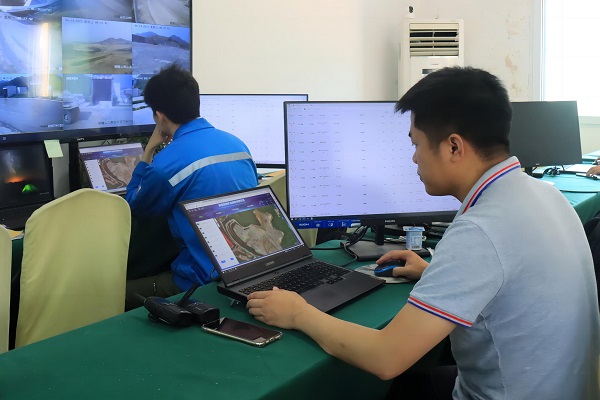 “根據(jù)當(dāng)天生產(chǎn)計劃,導(dǎo)入配礦計劃,尋跡編碼、路線、挖機、卸料口等配置信息的檢查是第一步,在得到無人駕駛安全員的安全回復(fù)后,才能下發(fā)點火指令?!焙2┲悄芸萍脊緦嵻嚋y試工程師李林說,他正在對無人礦車進行發(fā)車前的詳細(xì)安全檢查。