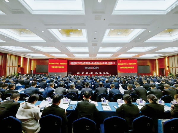 1月30日下午,海螺水泥在總部大廈三樓海螺廳召開了2024年工作會議暨二屆二次職工(工會會員)代表大會??偨Y2023年工作,部署2024年經(jīng)營目標任務。公司班子、各區(qū)域、子公司主要負責人、部室負責人以及職工代表共290余人在蕪湖主會場參加了會議,各子公司其他班子成員及二級部門主要負責人以視頻連線方式參會。會議由公司副總經(jīng)理吳鐵軍主持。