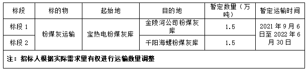 1.標的物:大唐寶雞熱電廠粉煤灰運輸。