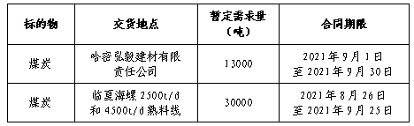 為做好哈密弘毅公司及臨夏海螺9月份煤炭采購工作,滿足生產(chǎn)需要,本著“公開、公平、公正”的原則,擬對煤炭供貨進(jìn)行公開招標(biāo),現(xiàn)將招標(biāo)采購信息發(fā)布如下: