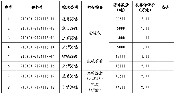 為進一步體現(xiàn)公平、公正、公開的原則,拓寬采購渠道,提高采購質量,增強粉煤灰、脫硫石膏等物資保供安全性。浙江區(qū)域建德海螺、寧波海螺、象山海螺、上虞海螺、樂清海螺五家公司聯(lián)合統(tǒng)一對生產水泥所需的粉煤灰、脫硫石膏等物資采購進行公開招標,現(xiàn)將相關事宜公告如下:
