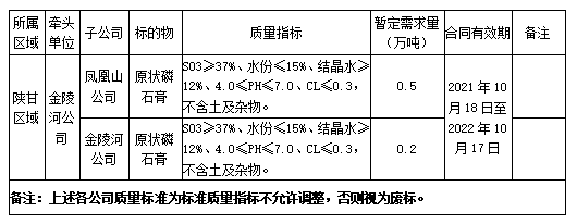 根據(jù)2021-2022年度鳳凰山公司、金陵河公司生產(chǎn)經(jīng)營(yíng)計(jì)劃,現(xiàn)對(duì)2021年度原狀磷石膏采購(gòu)組織招標(biāo),為進(jìn)一步體現(xiàn)公平、公正、公開(kāi)透明的原則,此次招標(biāo)將在安徽海螺水泥股份有限公司陽(yáng)光采購(gòu)平臺(tái)公開(kāi)進(jìn)行,現(xiàn)將招標(biāo)采購(gòu)信息發(fā)布如下: