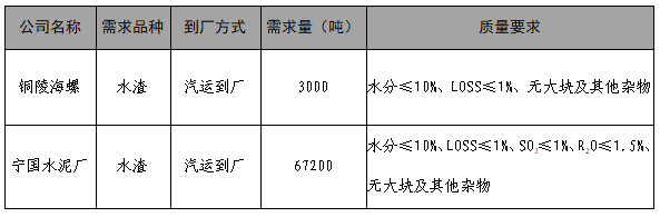 根據(jù)2022年上半年安徽銅陵海螺水泥有限公司、安徽海螺水泥股份有限公司寧國水泥廠生產(chǎn)需求,對水泥生產(chǎn)配料用水渣進行聯(lián)合公開招標(biāo),為體現(xiàn)公平、公正、公開的原則,同時為拓寬采購渠道,提高采購質(zhì)量,現(xiàn)將招標(biāo)相關(guān)事宜公告如下:
