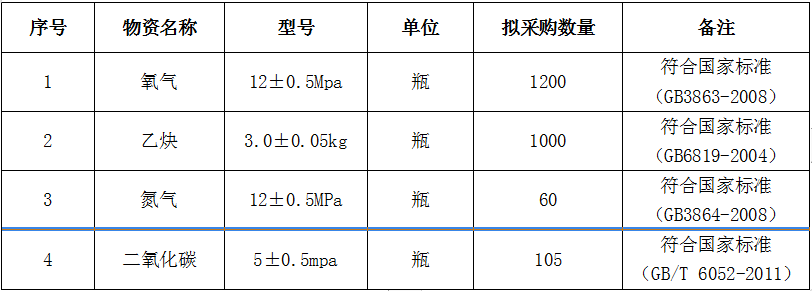 1.招標(biāo)物資名稱:工業(yè)氣體(氧氣、乙炔、氮?dú)?、二氧化碳?/span>。