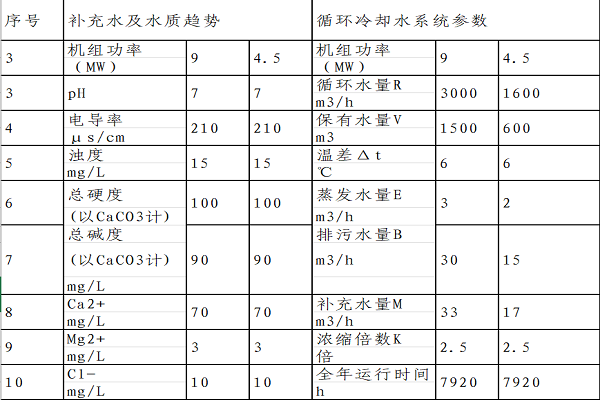 2、循環(huán)冷卻水系統(tǒng)參數(shù)和補(bǔ)充水及水質(zhì)趨勢(shì)判定:
