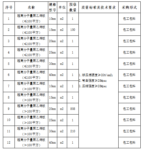 1.標(biāo)的物:超高分子量聚乙烯板(純材料/包工包料)。