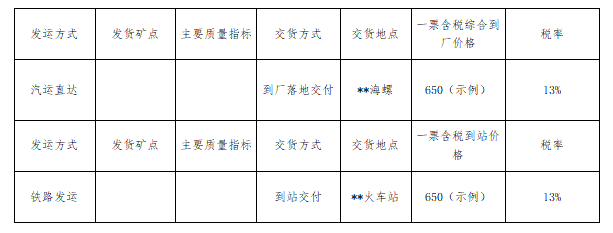 6.投標礦點的煤質需符合所投標段煤質要求,招標方有權對投標礦點進行調研,若質量不符合要求則取消投標資格。