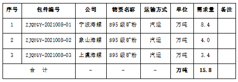 3、采購數(shù)量:礦粉合計15.8萬噸。