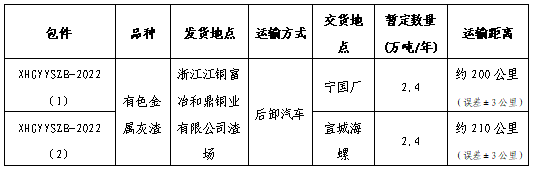 為做好安徽海螺水泥有限公司寧國水泥廠(以下簡稱“寧國廠”)、安徽宣城海螺水泥有限公司(以下簡稱“宣城海螺”)2022年度有色金屬灰渣汽車運輸工作,本著“公開、公平、公正”的競爭原則,選擇經(jīng)營能力較好、運輸資質(zhì)合格、保供和服務能力較強的運輸單位承攬本次運輸任務,現(xiàn)將本次招議標的有關事宜公告如下,歡迎有實力的運輸單位參加本次招投標項目。