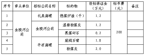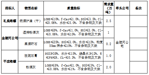 根據(jù)2021-2022年淡季平?jīng)龊B?、禮泉海螺及金陵河公司生產(chǎn)經(jīng)營計(jì)劃,現(xiàn)對(duì)2021-2022年淡季部分電廠工業(yè)廢渣采購組織招標(biāo),為進(jìn)一步體現(xiàn)公平、公正、公開透明的原則,此次招標(biāo)將在安徽海螺水泥股份有限公司陽光采購平臺(tái)公開進(jìn)行,現(xiàn)將招標(biāo)采購信息發(fā)布如下: