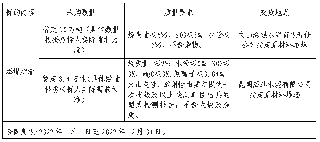 投標單位需提供能證明具有保供能力的材料;投標單位具備獨立法人資格,提供真實、合法有效的公司資質(zhì);具備一般納稅人資格,無不良經(jīng)營記錄,能夠提供合規(guī)、合法、有效的增值稅專用發(fā)票;具有較強的保供能力、應(yīng)急能力,供應(yīng)文山海螺月供貨能力不得低于4000噸。供應(yīng)昆明海螺月供貨能力不得低于3500噸。