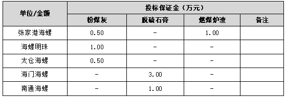 1.3.2 數(shù)量:①粉煤灰暫定2萬噸(其中張家港海螺0.60萬噸、海螺明珠0.90萬噸、太倉海螺0.50萬噸);②脫硫石膏暫定4.7萬噸(其中海門海螺3.50萬噸、南通海螺1.2萬噸);③燃煤爐渣暫定1.2萬噸(張家港海螺1.2萬噸)。