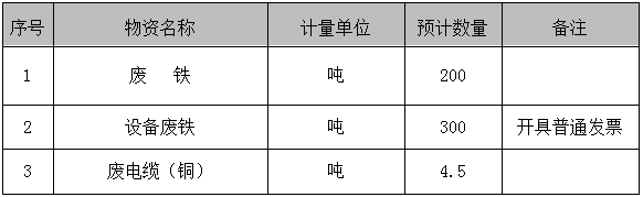 備注:回收商負責人工、氧氣、乙炔切割;自備吊車、叉車、鏟車、運輸車輛、裝車、工具等;包含清理場地垃圾費用。