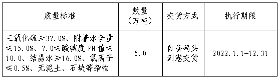 據(jù)生產(chǎn)經(jīng)營需求,馬鞍山海螺水泥有限責任公司將對2022年2月1日-2022年12月31日合同期改性磷石膏粉開展采購招標工作,為進一步體現(xiàn)公開、公平、公正的原則,現(xiàn)將相關事宜公告如下: