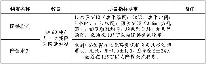 按照除稅降低1單位六價鉻使用成本(元/ppm/噸)最優(yōu)確定中標單位,具體以開標前評標組人員所定評標原則為準。