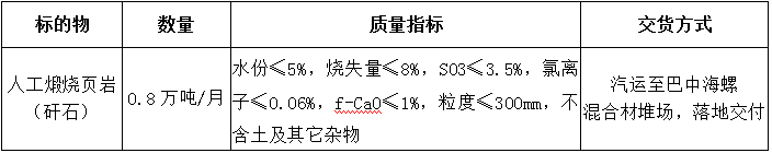 根據(jù)巴中海螺生產(chǎn)經(jīng)營(yíng)需求,現(xiàn)對(duì)2022年度水泥生產(chǎn)用人工煅燒頁(yè)巖(矸石)進(jìn)行公開(kāi)招標(biāo),本著公平、公正、公開(kāi)、透明的原則,現(xiàn)將招標(biāo)相關(guān)事宜公告如下: