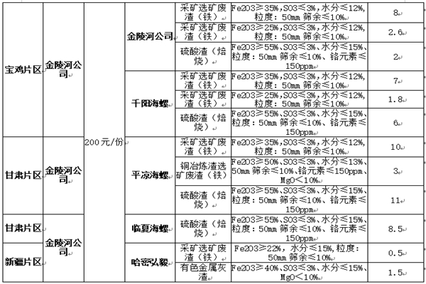 說(shuō)明:其中采礦選礦廢渣為原礦資源,不允許摻配含鐵工業(yè)廢渣,對(duì)于違約情形,按照合同約定處罰。