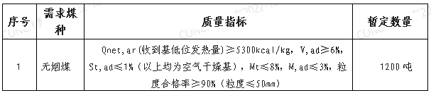 根據(jù)公司生產(chǎn)需求,公司擬對(duì)2022年11月份無(wú)煙煤進(jìn)行招標(biāo),選定中標(biāo)人,為體現(xiàn)公平、公正、公開(kāi)的原則,拓寬采購(gòu)渠道,現(xiàn)將招標(biāo)相關(guān)事宜公告如下: