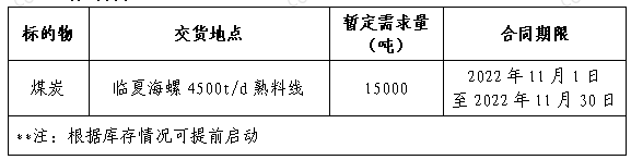為做好我公司2022年煤炭采購工作,滿足生產(chǎn)需要,本著“公開、公平、公正”的原則,擬對煤炭貿(mào)易渠道供貨進(jìn)行公開招標(biāo),現(xiàn)將招標(biāo)采購信息發(fā)布如下: