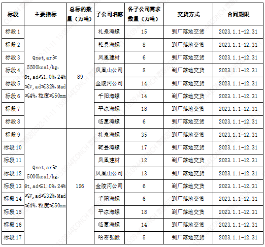 根據(jù)2023年陜甘區(qū)域各子公司煤炭需求,為保障各公司生產(chǎn),擬對2023年煤炭采購進(jìn)行公開招標(biāo),現(xiàn)將招標(biāo)相關(guān)事宜公告如下: