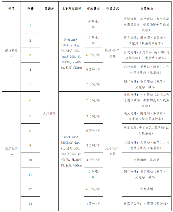 2. 投標(biāo)人所提供礦點(diǎn)煤炭生產(chǎn)能力30萬噸/年及以上,礦點(diǎn)屬于貴州省外資源;