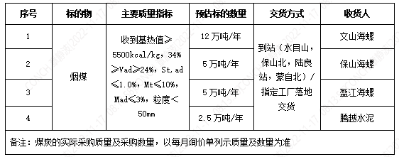 2.投標人所提供煤炭礦點產(chǎn)能不低于30萬噸/年。