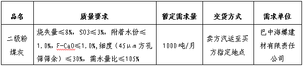 1.標(biāo)的內(nèi)容:二級(jí)粉煤灰;