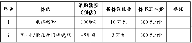 1.1招標(biāo)名稱:安徽海螺暹羅耐火材料有限公司電熔鎂砂和廢舊電瓷瓶招標(biāo)。