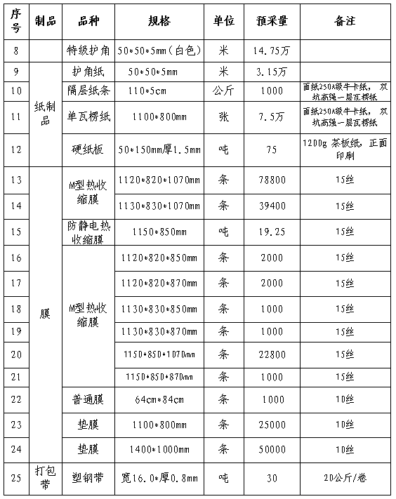 根據(jù)公司生產(chǎn)經(jīng)營(yíng)計(jì)劃,為確保2023-2024年度產(chǎn)品包裝需求;現(xiàn)本著“公開、公平、公正、透明”的原則公開招標(biāo),誠(chéng)邀經(jīng)營(yíng)能力較好、產(chǎn)品質(zhì)量合格、保供和服務(wù)能力較強(qiáng)的包裝材料生產(chǎn)單位參加投標(biāo),現(xiàn)將有關(guān)事項(xiàng)公告如下: