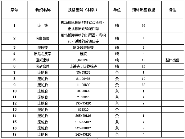 3、出售地點(diǎn):濟(jì)寧海螺廢舊物資堆場(chǎng)或指定地點(diǎn)。
