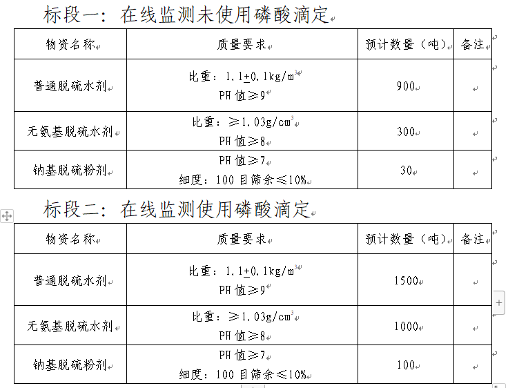 3.質(zhì)量指標(biāo):滿足國家化工合格品相關(guān)質(zhì)量控制標(biāo)準(zhǔn),產(chǎn)品對設(shè)備無腐蝕,對熟料質(zhì)量和正常生產(chǎn)無影響。同時預(yù)計招標(biāo)人將在2024年2月份開始使用在線監(jiān)測磷酸滴定法,要求中標(biāo)單位提前做好相關(guān)準(zhǔn)備,屆時收到招標(biāo)人正式通知后馬上啟動。