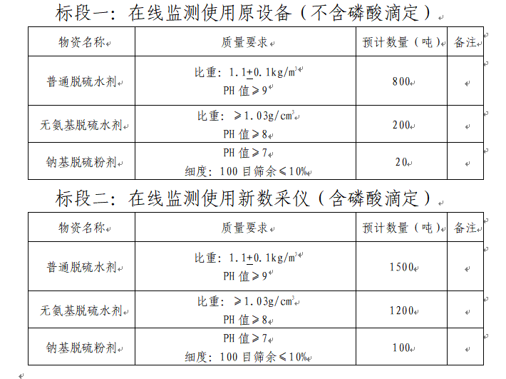 3.質(zhì)量指標(biāo):滿足國(guó)家化工合格品相關(guān)質(zhì)量控制標(biāo)準(zhǔn),產(chǎn)品對(duì)設(shè)備無(wú)腐蝕,對(duì)熟料質(zhì)量和正常生產(chǎn)無(wú)影響。同時(shí)預(yù)計(jì)招標(biāo)人將在2024年2月份開(kāi)始在線監(jiān)測(cè)使用新數(shù)采儀(含磷酸滴定),要求中標(biāo)單位提前做好相關(guān)準(zhǔn)備,屆時(shí)收到招標(biāo)人正式通知后馬上啟動(dòng)。