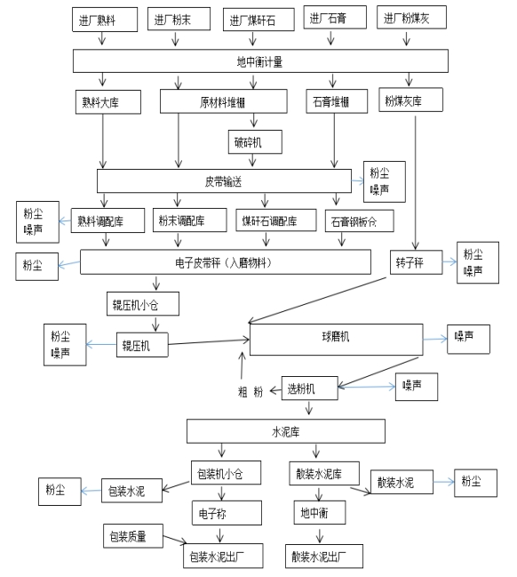 公司產(chǎn)品的主要生產(chǎn)工藝為水泥粉磨生產(chǎn)線。主要生產(chǎn)工藝流程如下所示: