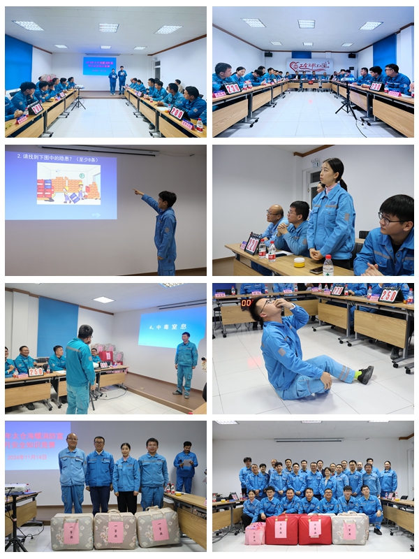 消防知識是每位員工應該具備的基本技能,不僅關乎個人安全,也關乎整個公司的安全。11月14日下午,太倉海螺精心策劃開展了“消防宣傳月”知識競賽活動,內容涵蓋了消防法律法規(guī)、消防安全常識、火災預防與撲救等方面的知識,除了常規(guī)的必答題、搶答題、風險題,還結合現(xiàn)場和過往案例設置了圖文識別題、視頻糾錯題,為員工帶來了一頓豐盛的消防知識“大餐”。大家各自拿出真才實學、同臺競技,在進一步提高安全防范知識和技能的同時,更為他們在日常生活工作中有效預防火災事故的發(fā)生奠定了堅實基礎。