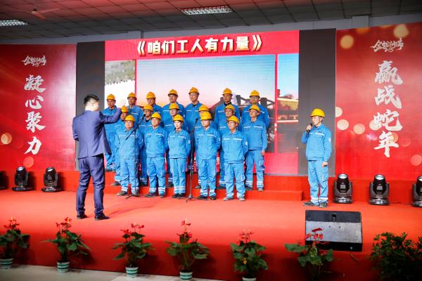 水泥分廠合唱團(tuán)齊聲高唱:“咱們工人有力量,嘿!咱們工人有力量……”歌聲慷慨激昂,唱出了廣大基層員工用堅(jiān)定的信念和不懈的努力為國家的基礎(chǔ)設(shè)施建設(shè)貢獻(xiàn)力量的決心。