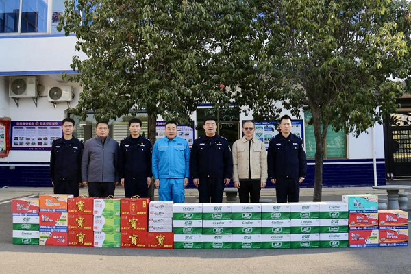 正值慶?!?.10”中國(guó)人民警察節(jié)5周年,為進(jìn)一步密切警企關(guān)系,發(fā)揚(yáng)海螺擁警擁政優(yōu)良傳統(tǒng),2024年1月10日,公司工會(huì)副主席王瑞智、總經(jīng)理助理郭鵬飛帶領(lǐng)公司慰問(wèn)小組,先后前往信豐縣西牛鎮(zhèn)派出所、縣交警大隊(duì)開(kāi)展了節(jié)日慰問(wèn),為他們送去方便面、牛奶、礦泉水等物資,向守護(hù)一方平安的人民警察致以崇高敬意與誠(chéng)摯謝意。
