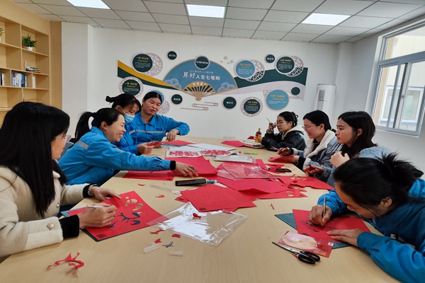 隨著各部門女職工的巧手翻飛,一張張薄薄的紅紙幻化變成精致的花朵兒、雙魚戲水、福臨門、十二生肖等圖案,惟妙惟肖,栩栩如生。隨后,將剪裁好的窗花分發(fā)給各部門職工,讓大家把富含著吉祥寓意的窗花帶回家。