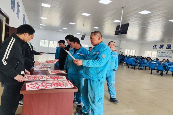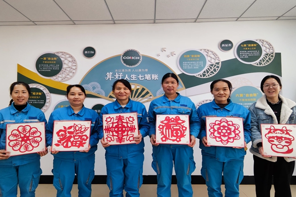 “想不到今年還能領(lǐng)到手工剪裁的窗花,我只有在小時候外婆給我剪過,讓我想起小時候的春節(jié),真是越來越有年味兒了!”一位生產(chǎn)崗位的員工一邊挑選著窗花一邊說道。