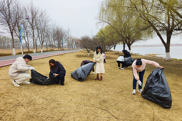 奔跑過后,小伙伴們兩人一組手持黑色垃圾袋沿湖邊緩緩前行,時(shí)不時(shí)彎腰撿拾地上的白色垃圾、枯枝等物?!芭芡瓴窖刂呥吷⒉竭厯炖?,既健康又環(huán)保,還順便增加饑餓感讓大家等會(huì)兒能多吃點(diǎn)燒烤,我們這算不算一舉數(shù)得???”“花姐你等會(huì)展示一下你的烤技啊,我想吃你烤的羊肉串……”談笑中,環(huán)湖撿垃圾志愿服務(wù)活動(dòng)接近尾聲。