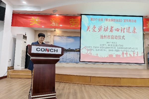 今年4月25日至5月1日是第23個全國《職業(yè)病防治法》宣傳周,本次活動的主題是“關(guān)愛勞動者心理健康”。為全面貫徹黨中央、國務(wù)院關(guān)于加強職業(yè)病防治工作的決策部署,持續(xù)推進(jìn)職業(yè)病防治工作,切實保障廣大勞動者職業(yè)健康權(quán)益,2025年4月25日上午9:00,池州市《職業(yè)病防治法》宣傳周活動啟動儀式在池州海螺會議室舉行。