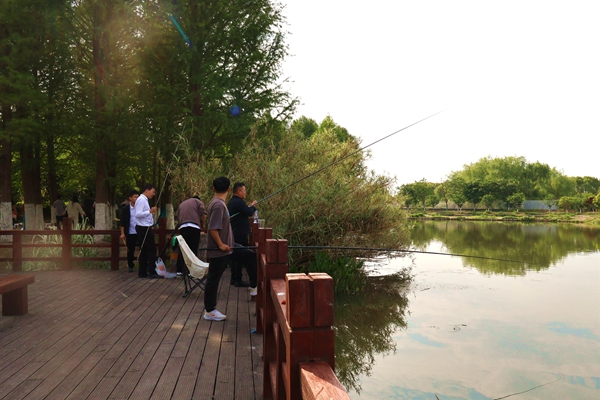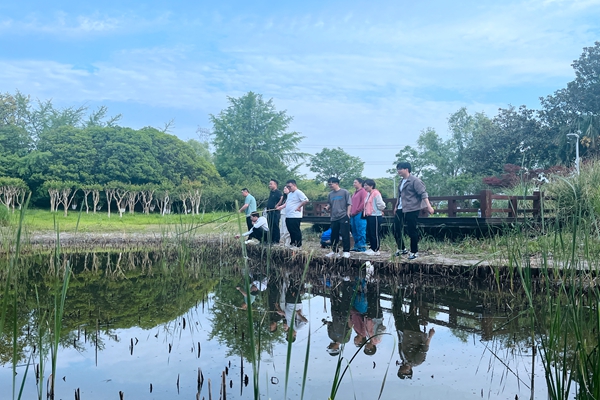 春天的西廬濕地公園草木豐茂、綠意盎然,到處氤氳著繁花和新苗的芳香。大家三五成群,或是漫步在林蔭道上,沐浴著透過香樟葉灑下來的稀松陽光;或是綁一個吊椅,欣賞著水杉林與藍(lán)天碧水構(gòu)成的美麗油畫;釣魚小分隊拎著裝備直奔河邊,尋找最佳釣位;水塘邊,大家用樹枝、細(xì)繩制作了簡易的工具,一場小龍蝦PK賽拉開序幕,引來眾多圍觀群眾。