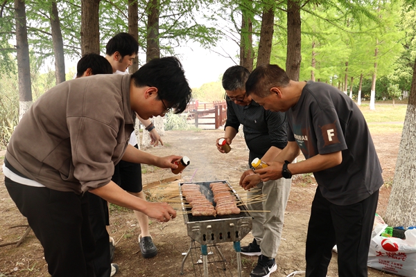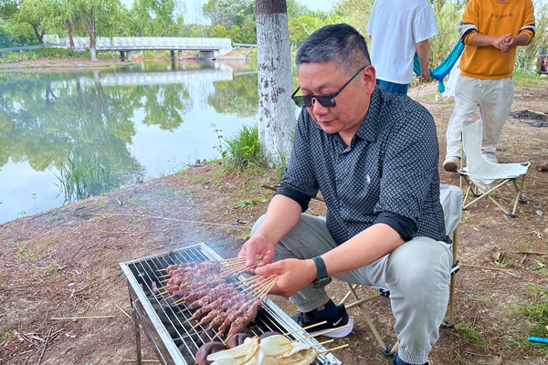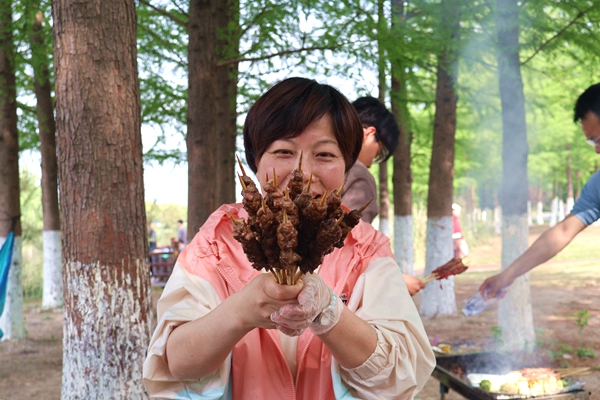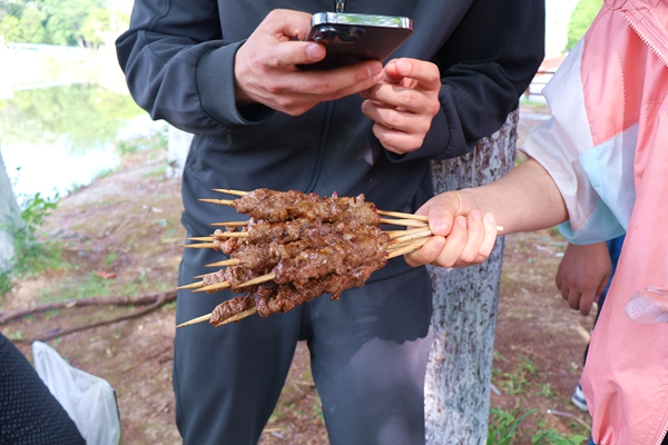 鯽魚、白條、小龍蝦都已就位,燒烤露營還能缺席?!心靈手巧的小伙伴們火速鋪好餐墊、串好食材、搭好烤架,“胡記燒烤”、“小高串串”、“阿武鐵板燒”等“五星商家”紛紛上線,為大家?guī)砹艘粓鲲柛故⒀纭?/span>